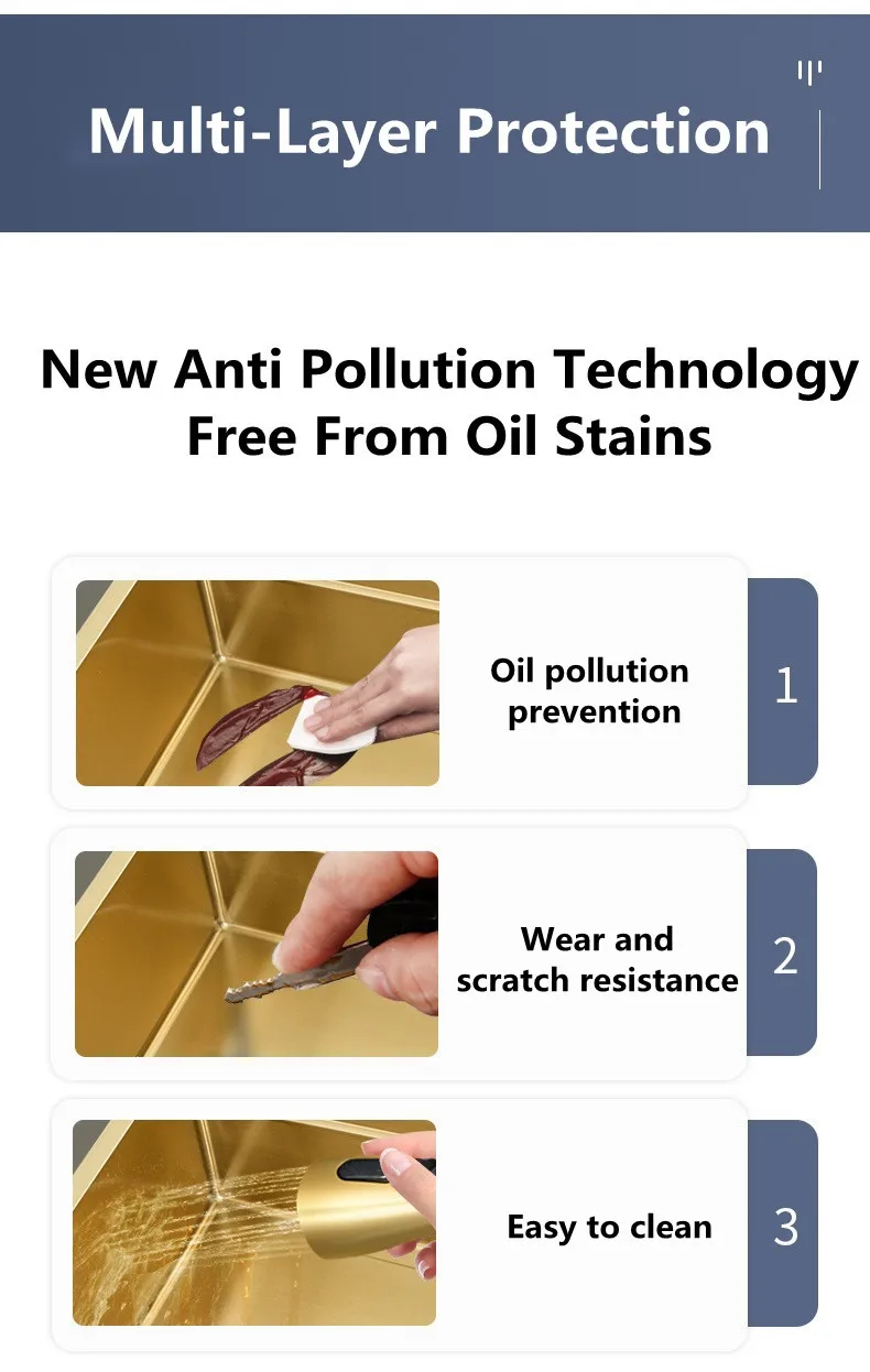 Multi hole design, can also install water purifier faucet, soap dispenser, cup washer, etc